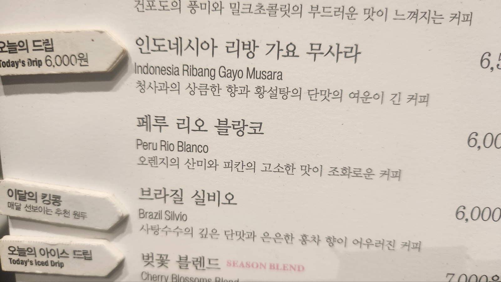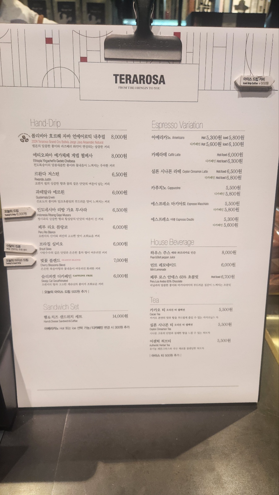 그리고 테라로사의 메뉴판을 보고 있으면