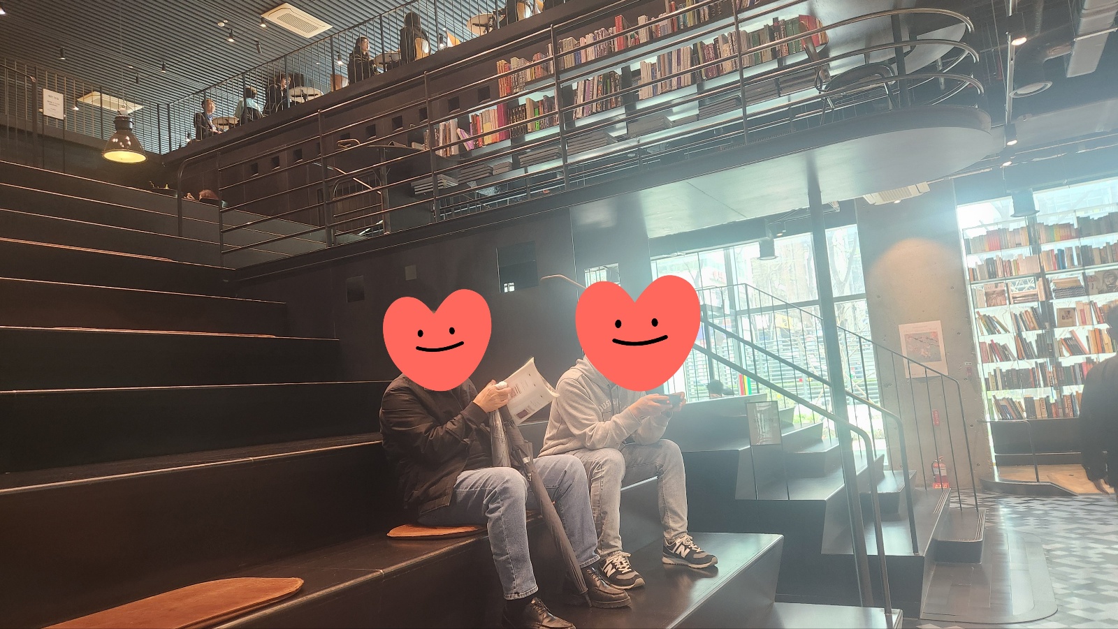 계단에서 그냥 앉아서 소박한 담소를 나누기로 했죠