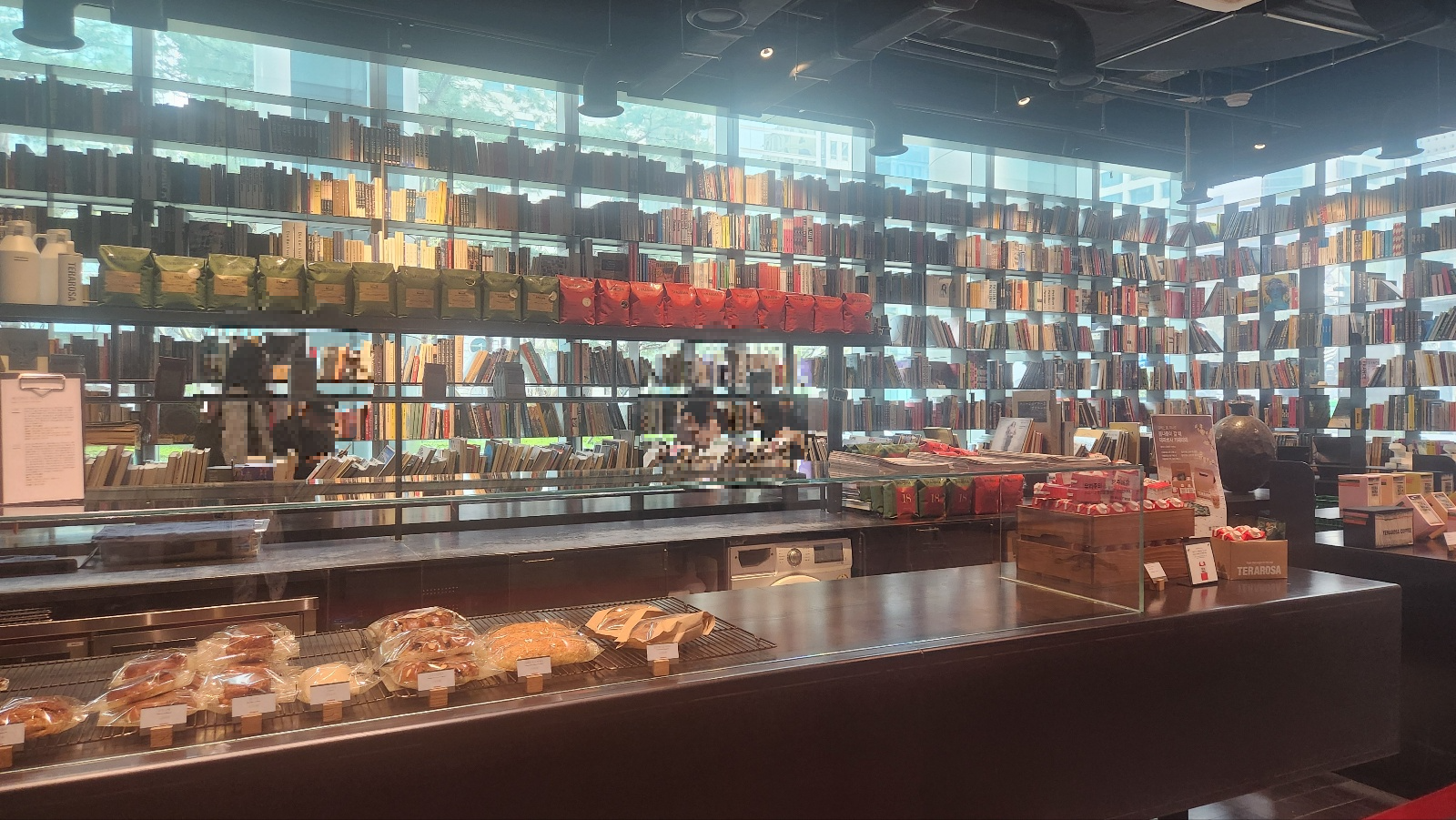 책들로 둘러싸여 있는 카페는