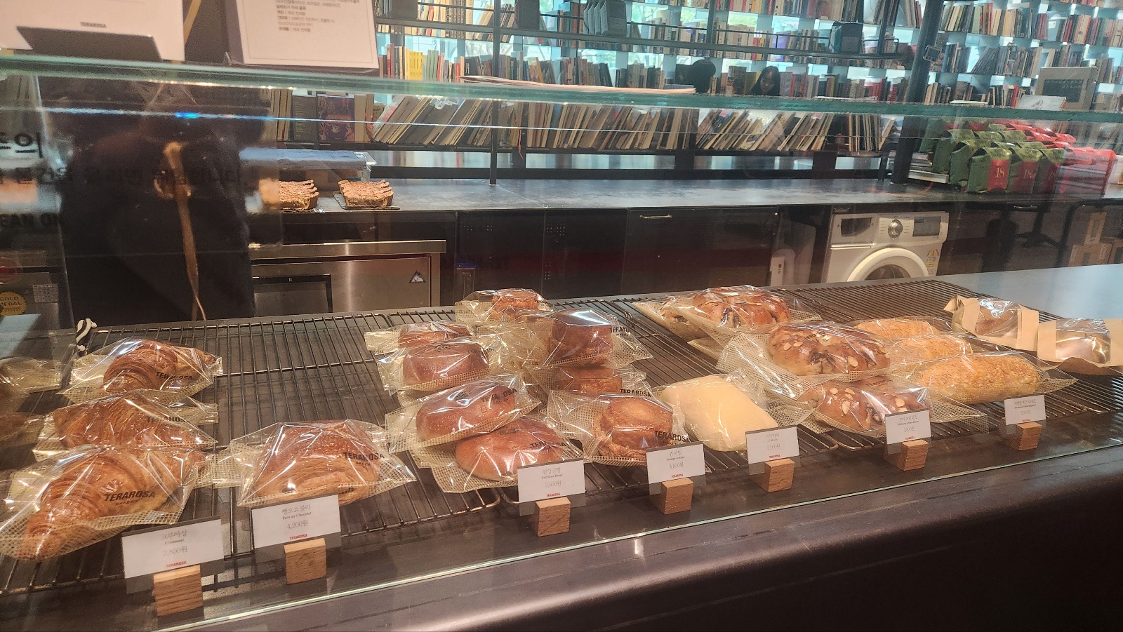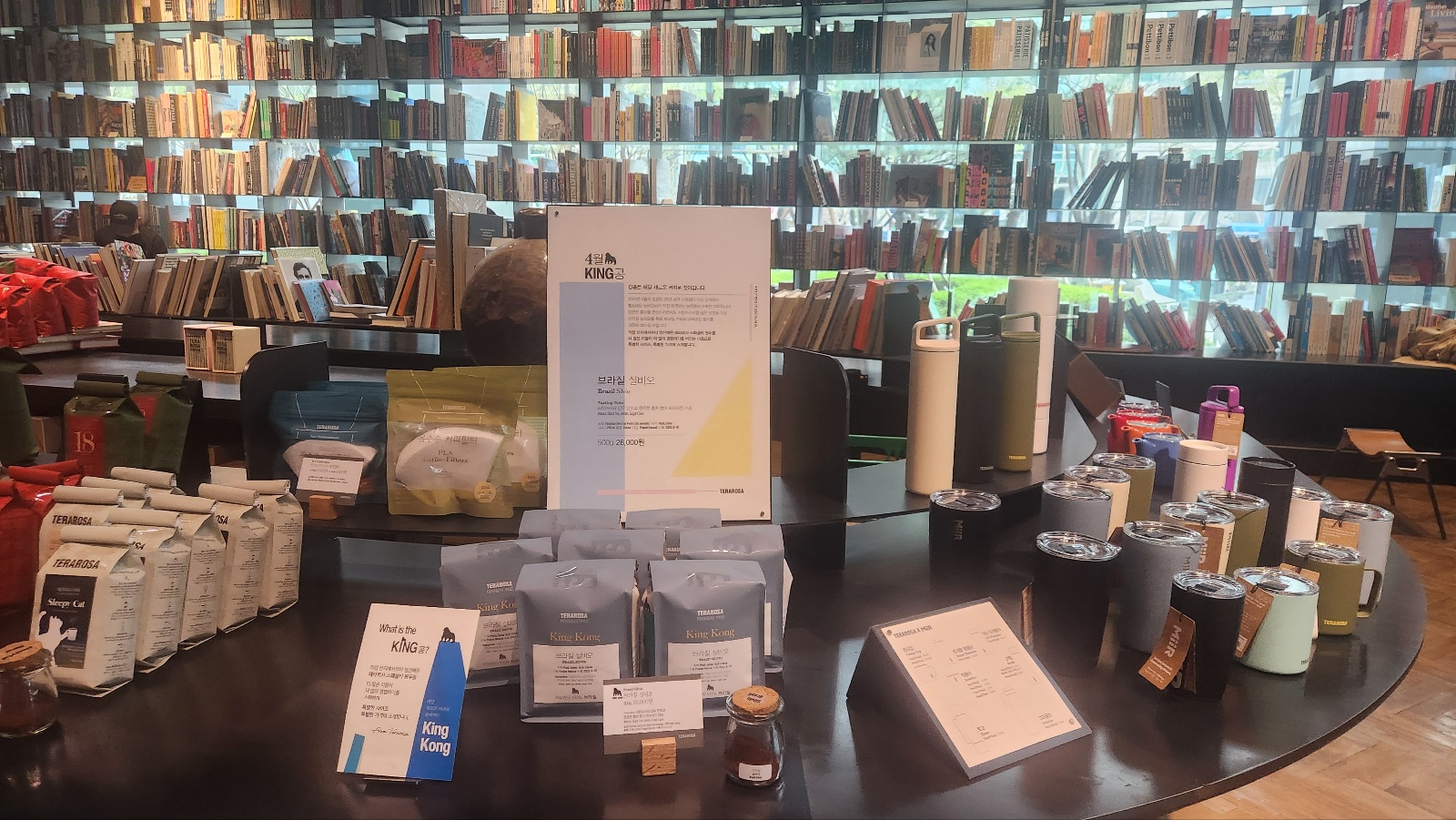 1층 카운터 뒤 벽면을 따라서는 서가가 있는데 책을 읽거나