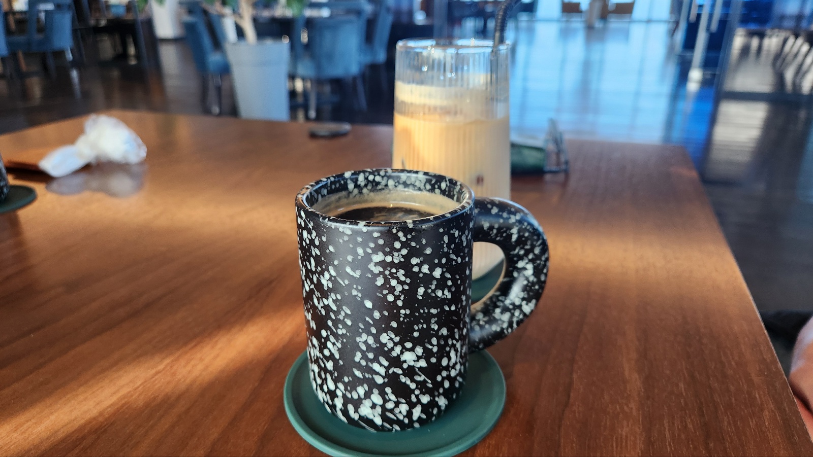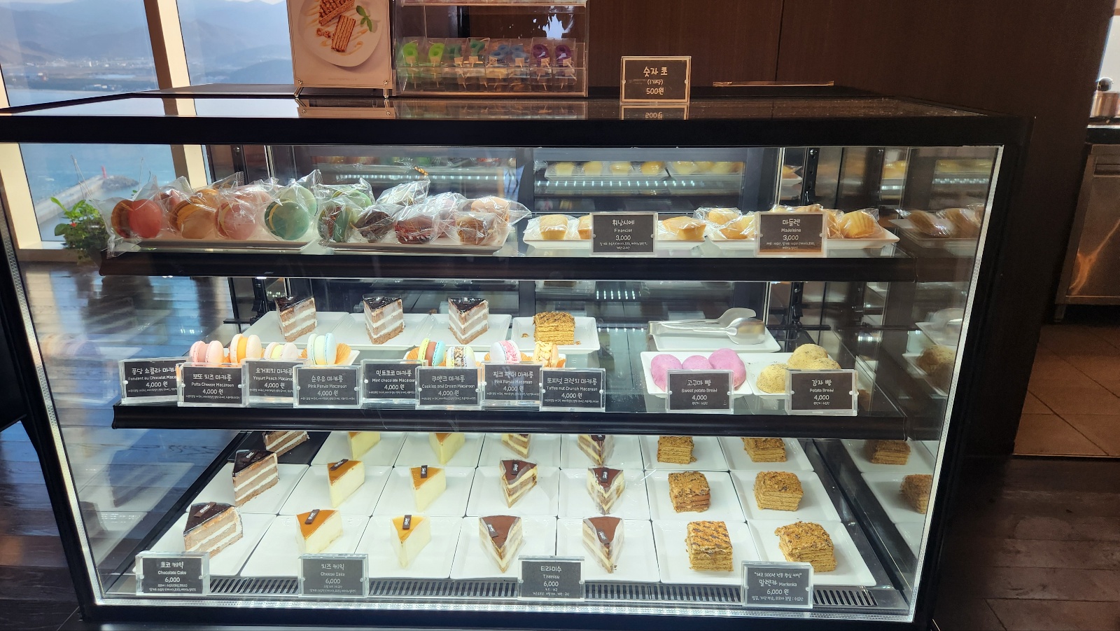 탑스텐 호텔 15층에 위치한 스카이라운지에서 조각케이크와 커피 한잔이면