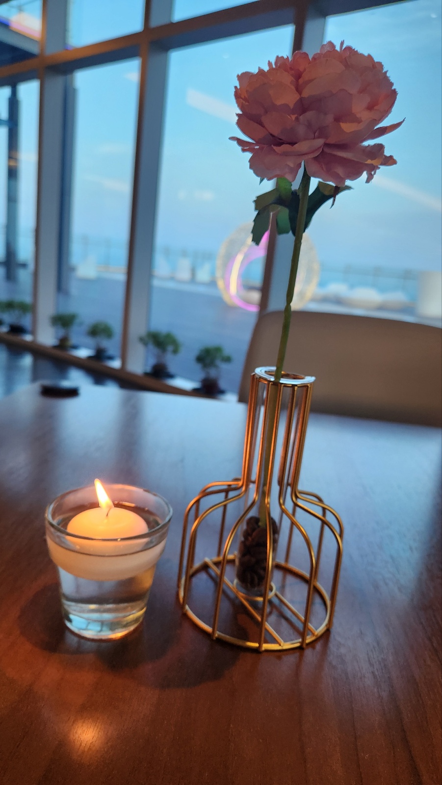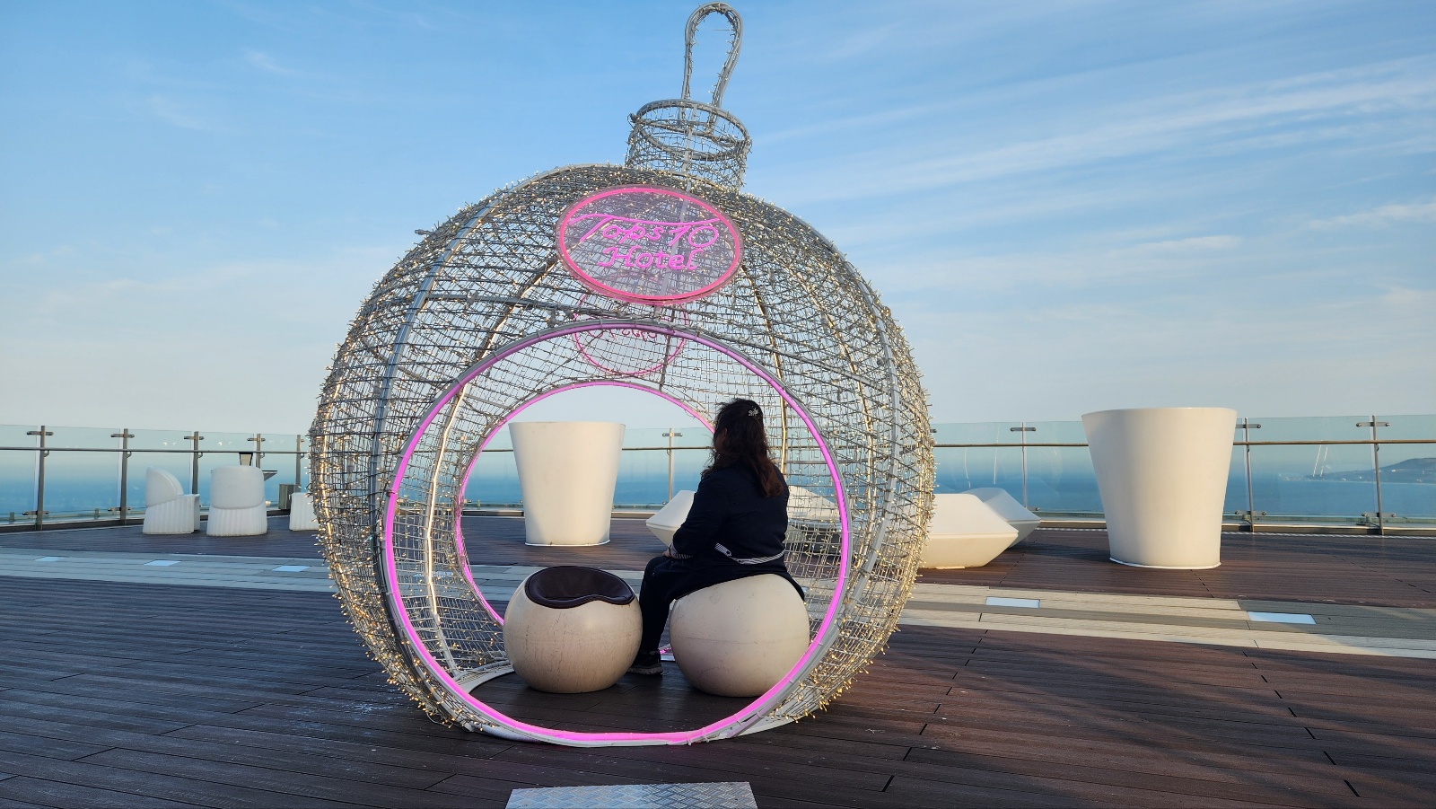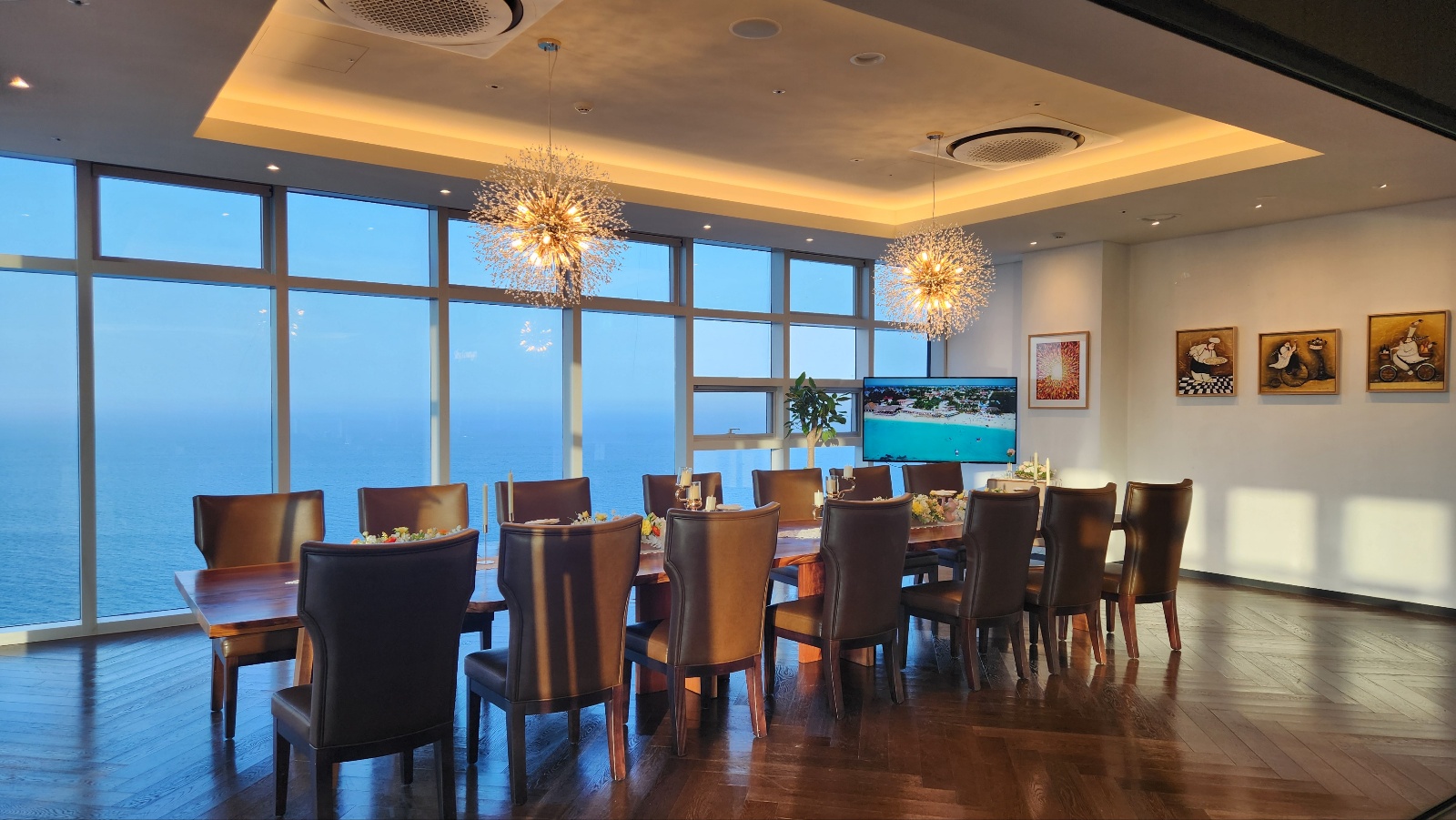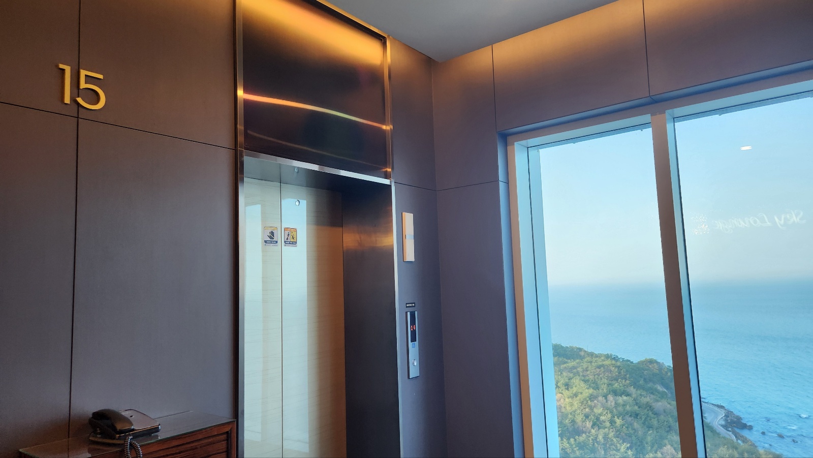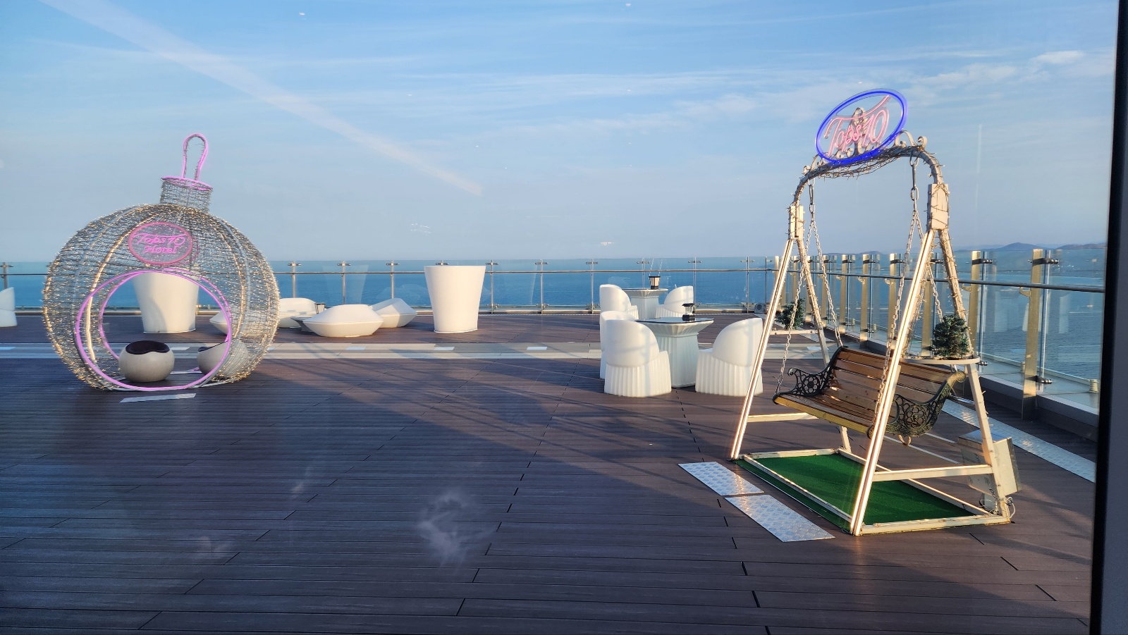 바다를 마음껏 볼 수 있는 스카이라운지에서