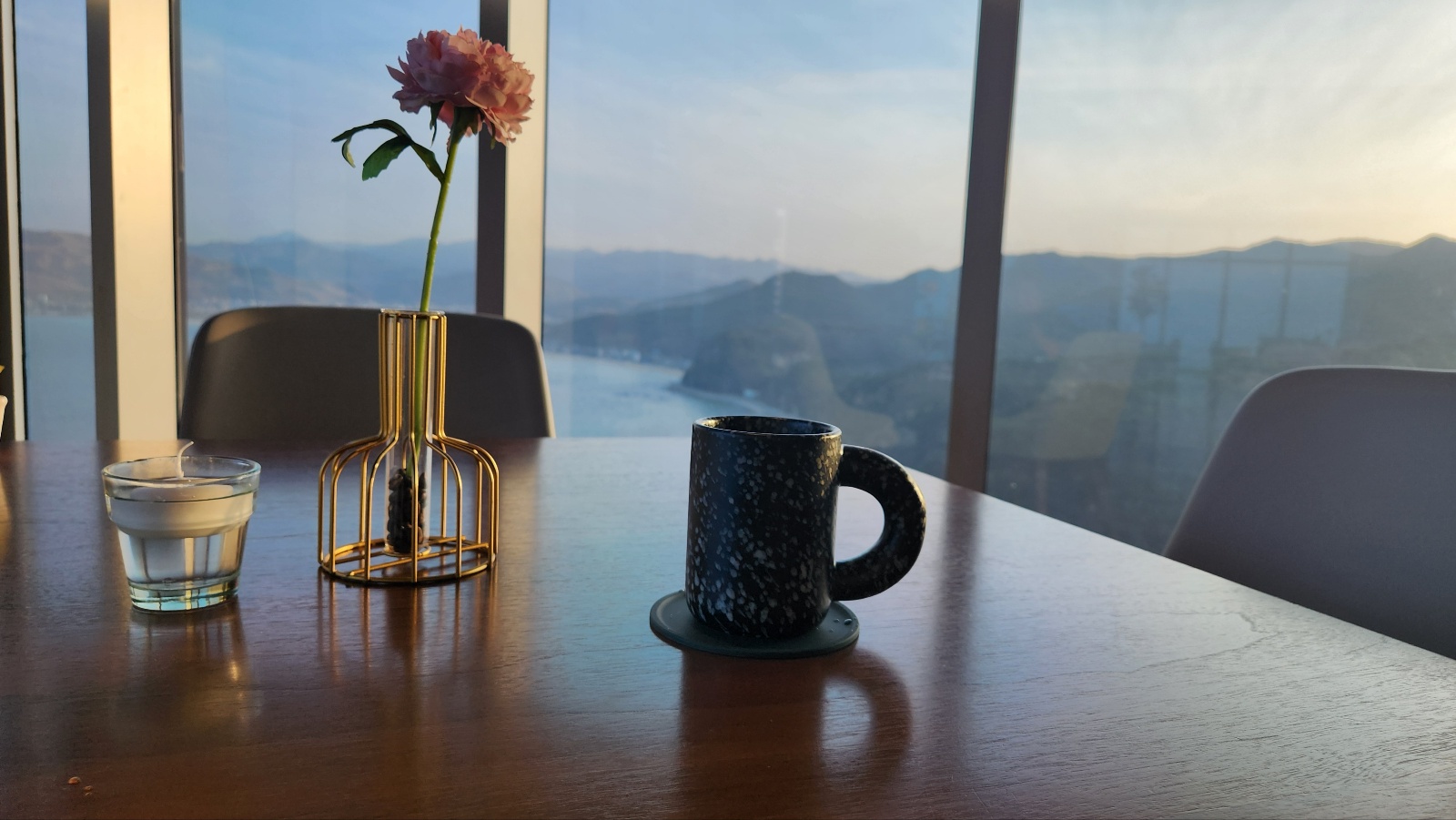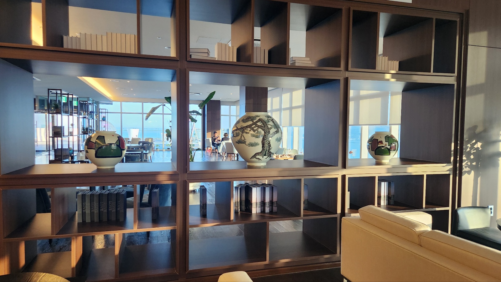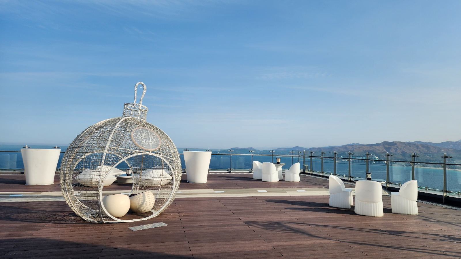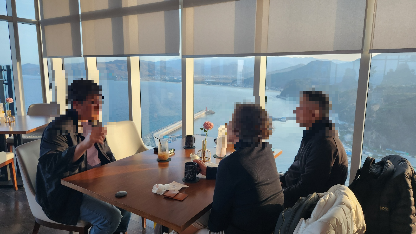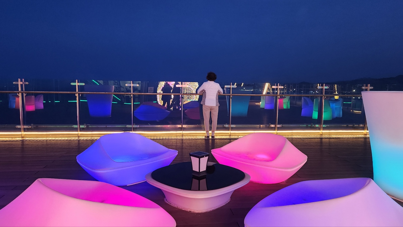 바다를 마음껏 볼 수 있는 스카이라운지에서