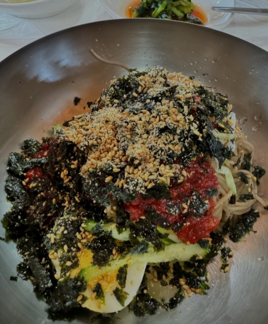 가곡 막국수의 기본 찬과 비빔막국수