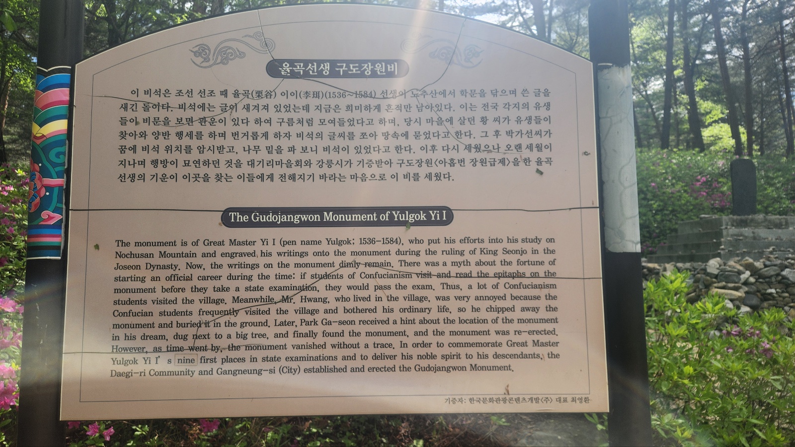 율곡선생님의 구도장원비(노추산에서 학문을 닦으며 쓴 글을 새긴 돌)