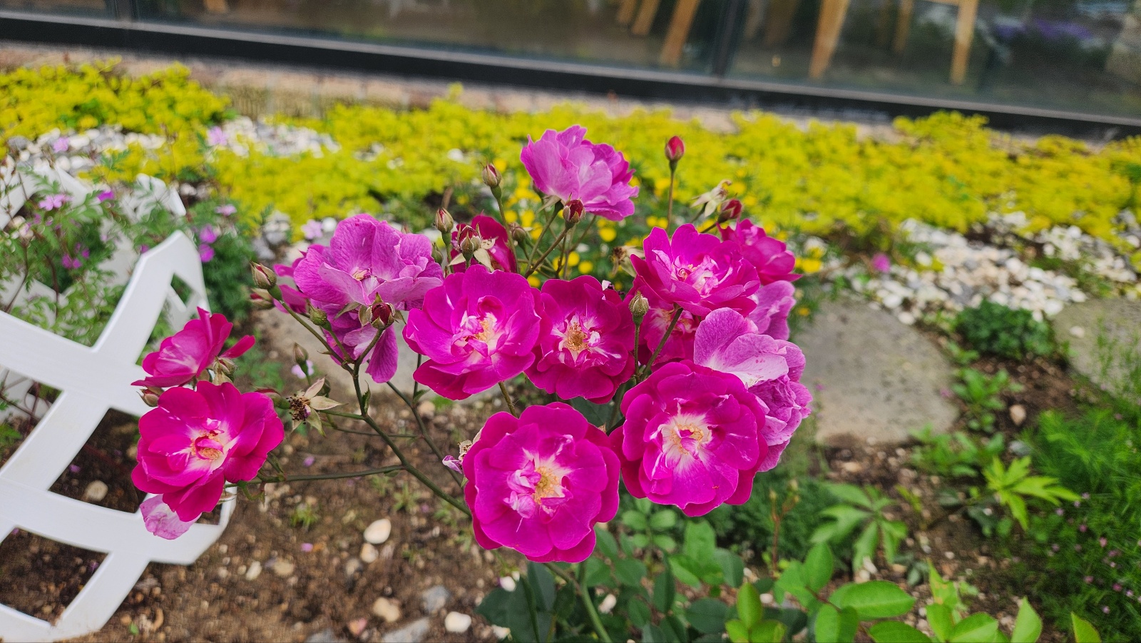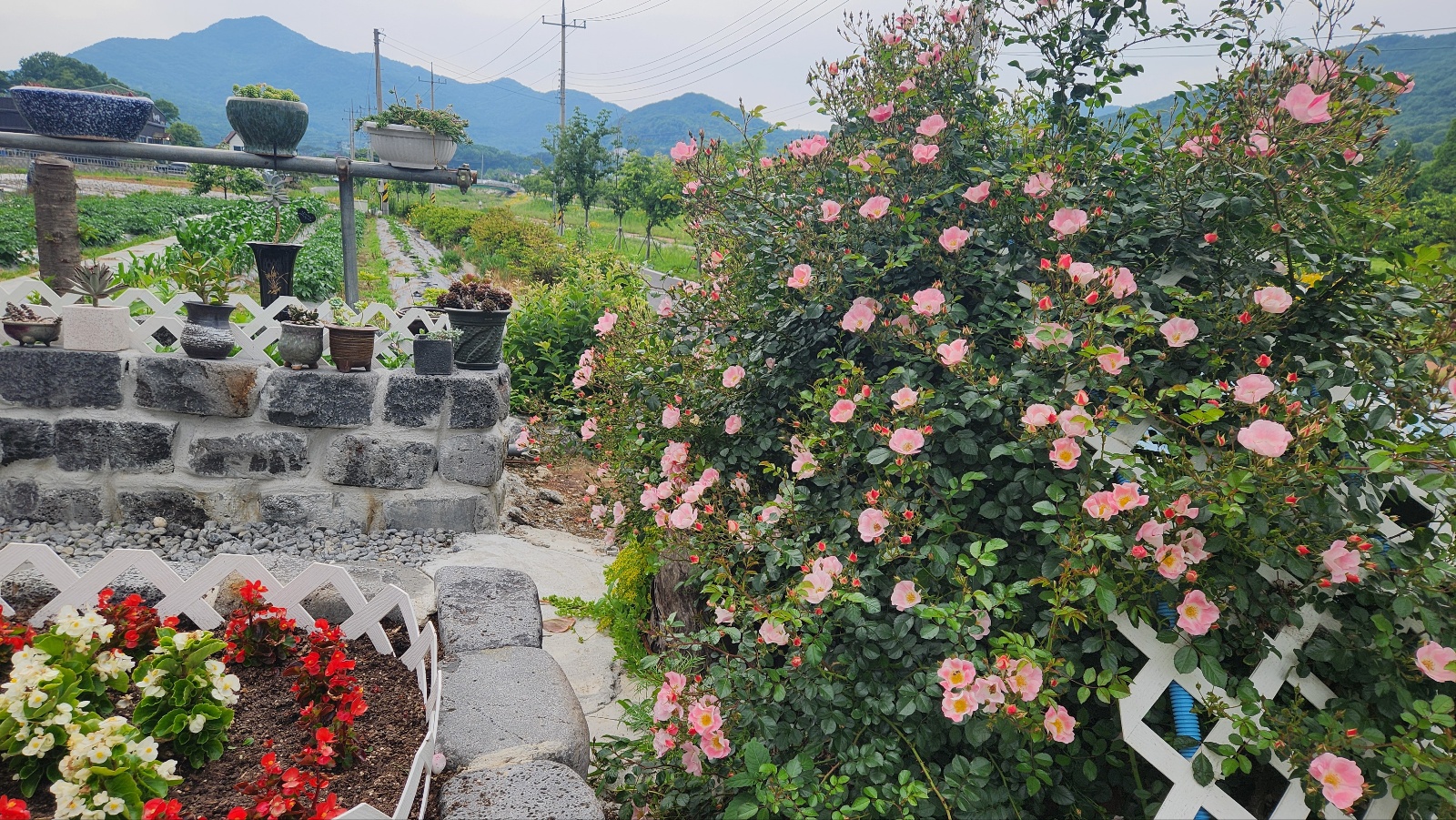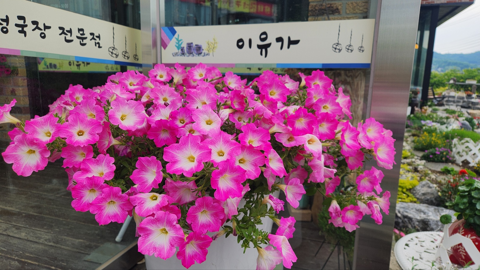 피튜니아 와 장미꽃들의 색감은 화려하게