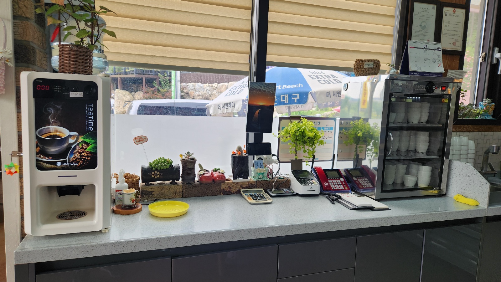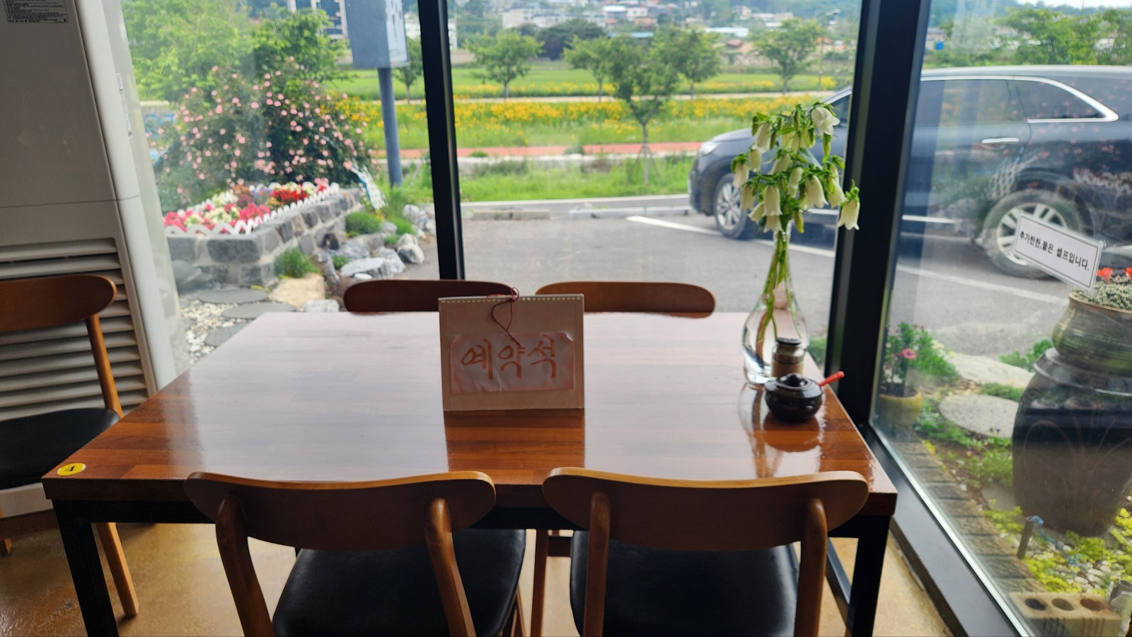 창가로 자리를 잡았다