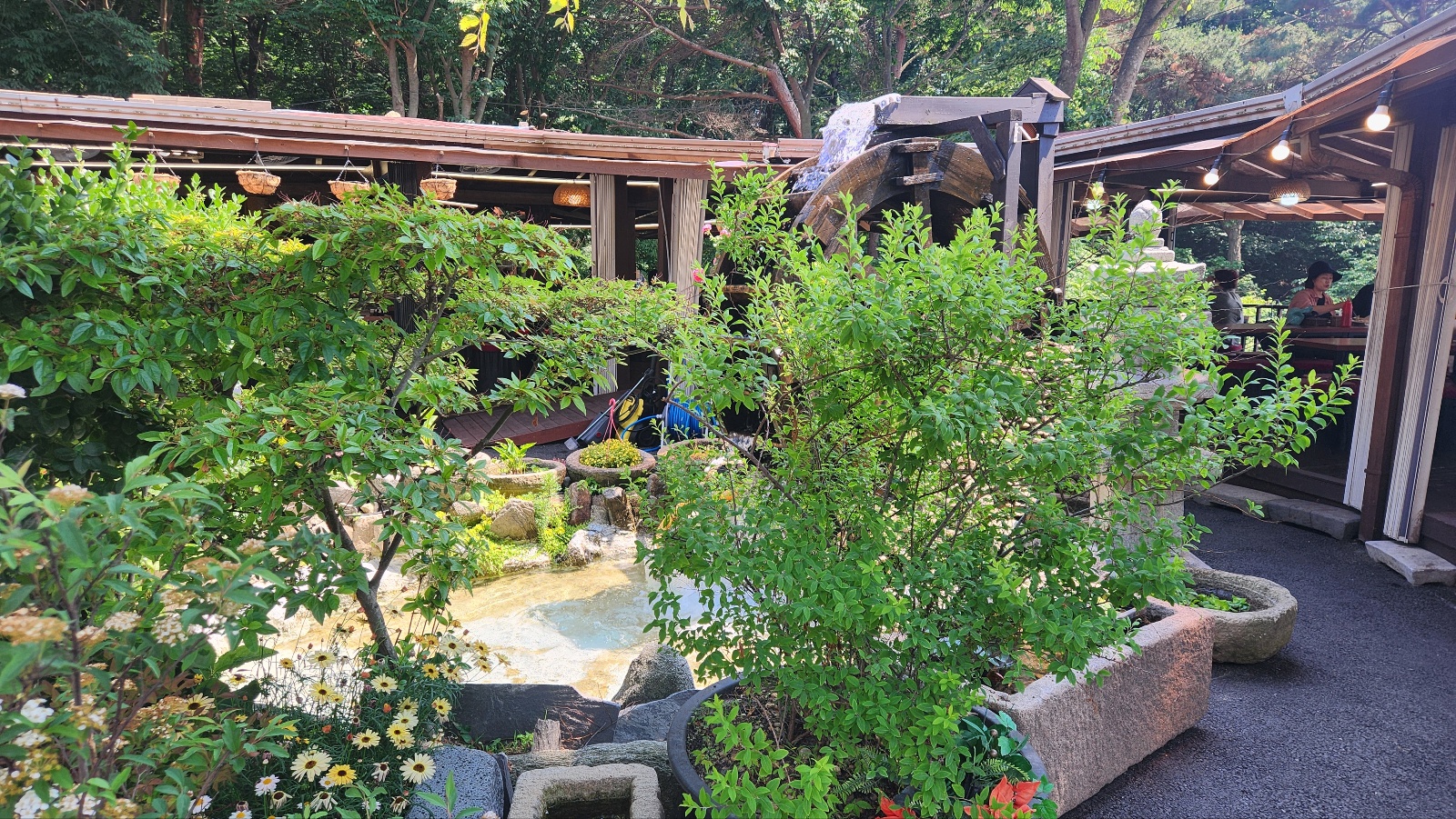 버베나꽃도 물레방아 식당의 인테리어가 되어준다