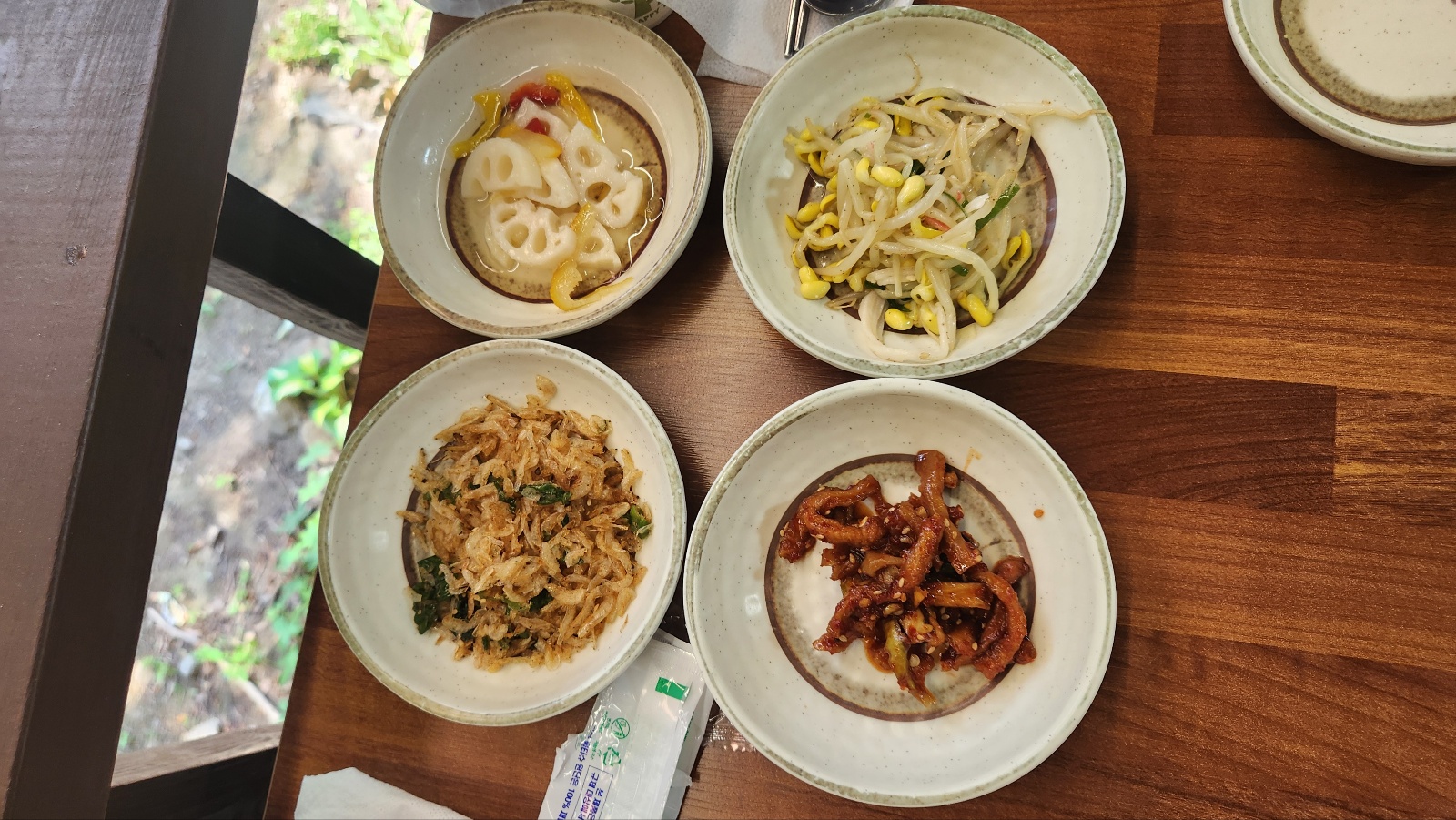 호박쌈, 연근초절임,콩나물 멸치볶음,