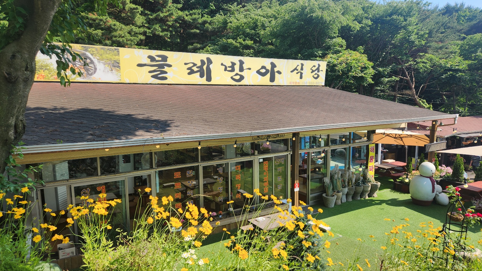 노란 금계국이 흐트러지게 피어있는 외부가 정겨운 식당이었다