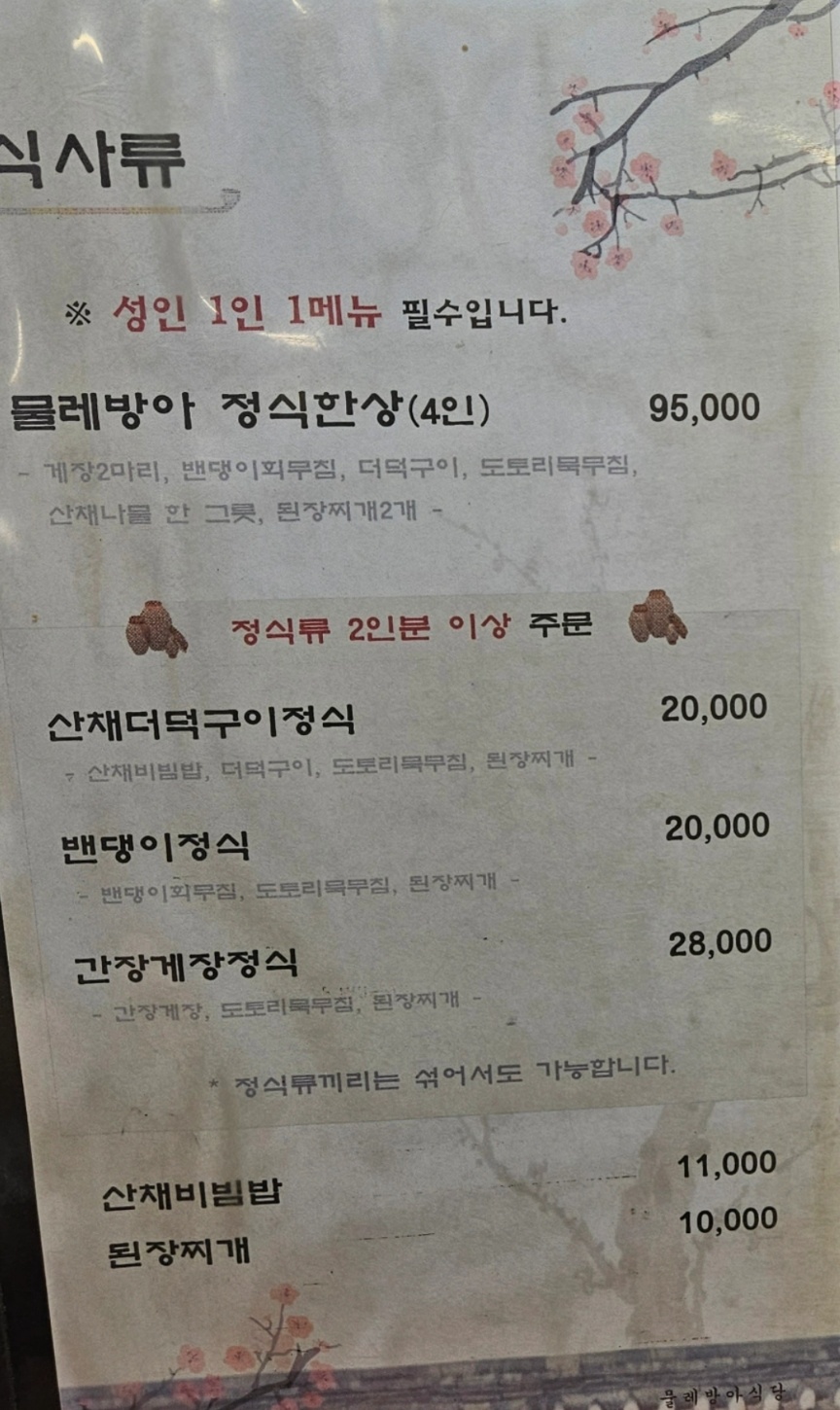 물레방아 식당 영업시간