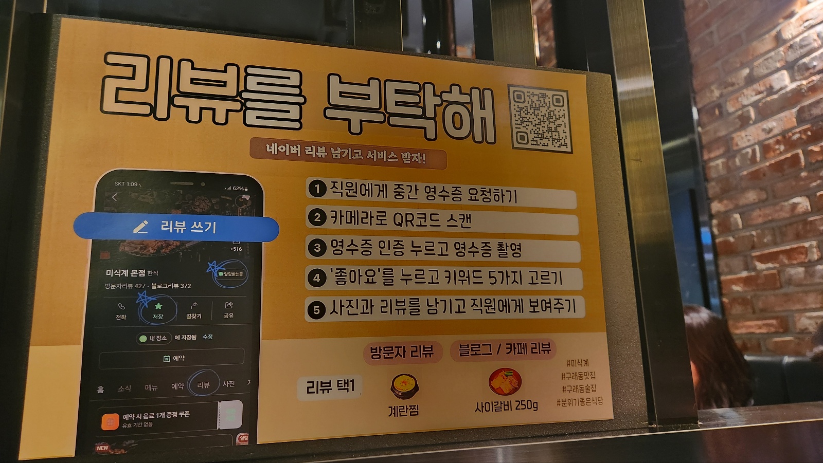 네이버에 리뷰를 남기면 계란찜이나 사이갈비를 준답니다