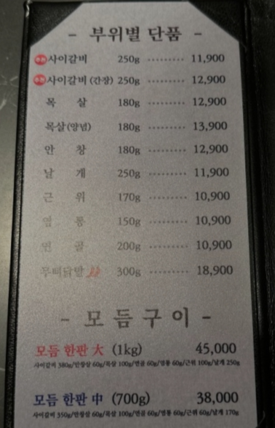 모둠구이 (대)를 주문했어요