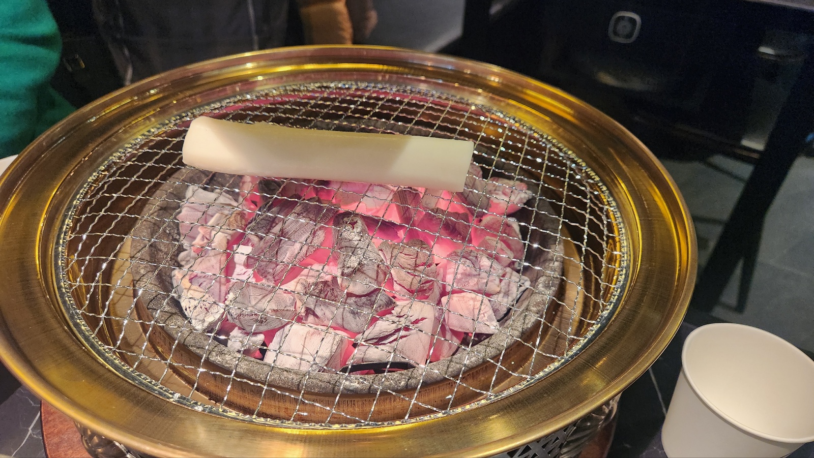 화롯불에 구워진 고기를 식지 않도록 소형 화로에 옮겨