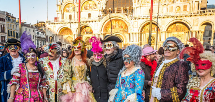 이탈리아 문헌 중 베네치아 카니발에 대한 언급한 가장 오래된 기록은 베네치아의 비탈레 팔리에르 총독의 1092년 연대기입니다. 그러나 오늘날까지 이어져온 베네치아 카니발은 베네치아공화국이 1162년 아퀼레이아와의 분란에서 승리한 기념으로 벌어진 축제에서 시작된 것으로 추정됩니다. 베네치아 인들은 아퀼레이아 대주교에 대한 승리를 기뻐하며 산 마르코광장에 모여 춤을 추며 축제를 벌였고 공물로 바쳐진 소 12마리를 관중이 보는 앞에서 도살하는 퍼포먼스를 하므로 축제를 벌이는 전통이 시작되었다고 할 수 있습니다. 카니발 기간에는 전쟁을 상징하는 불꽃놀이, 전투를 상징하는 무어인의 춤, 심판을 상징하는 황소 목 자르기, 평화를 상징하는 천사의 비행, 단결을 상징하는 인간탑 쌓기가 진행됩니다. 참회의 화요일이 다가올수록 축제는 절정에 달했고 마지막날에는 가면과 의상을 선보이는 가장행렬과 함께 밤늦도록 노래와 춤이 이어집니다. 세계각지에게 열리는 다른 카니발에 비해 이탈리아의 역사와 베네치아 지역의 전통을 충실하게 되살리고 있다는 평가를 받습니다. 그 핵심은 베니스 카니발이 기독교 달력, 특히 사순절 기간과 관련이 있다는 것입니다. 역사적으로 사순절은 부활절까지 이어지는 금식과 참회의 시기였으며, 카니발은 사순절의 엄숙한 의식이 시작되기 전에 면죄부의 마지막 기념행사 역할을 했습니다. 축제는 일반적으로 1월 말 또는 2월 초에 시작하여 사순절의 시작을 알리는 회 수요일 전날인 Shrove Tuesday 또는 Mardi Gras라고도 알려진 Shrove Tuesday에 끝이 납니다. 베니스 카니발 동안, 흥청망청하는 사람들은 금식과 성찰의 기간 이전에 삶의 즐거움을 받아들이면서 잔치, 음악, 그리고 춤을 즐깁니다. 카니발 동안 착용하는 마스크는 사회적 규범과 제약으로부터 일시적으로 해방되는 것을 나타내는 상징적인 중요성을 가지고 있습니다. 이 개념은 사회적 계층이 일시적으로 뒤집히고 개인은 일반적으로 허용되지 않는 방식으로 자유롭게 자신을 표현하는 혼란스러운 시기로서 카니발의 개념과 일치합니다.