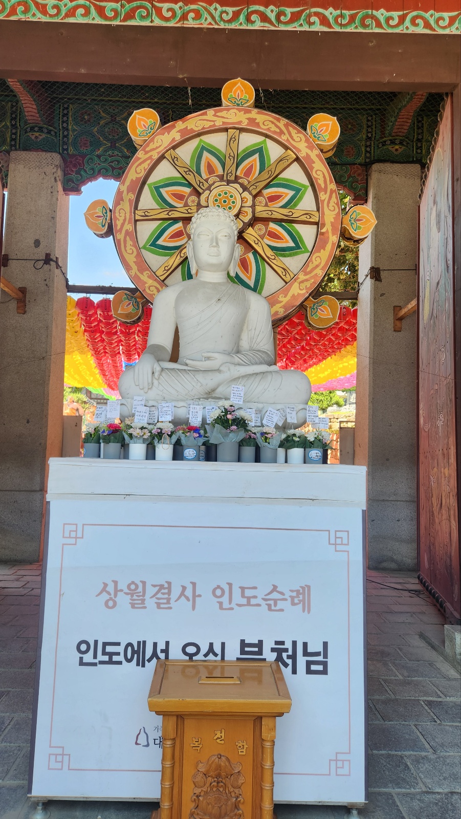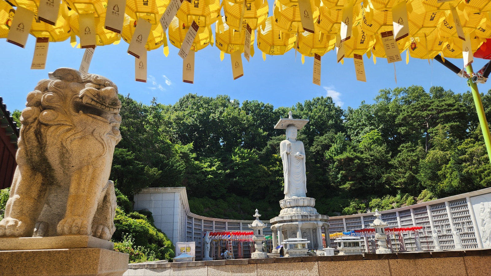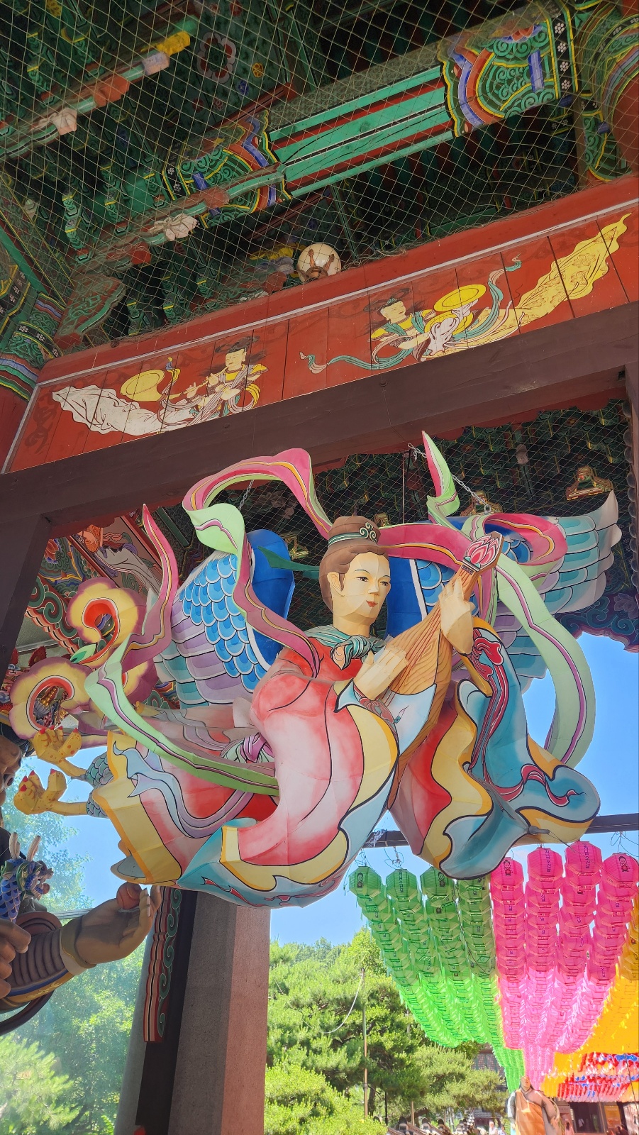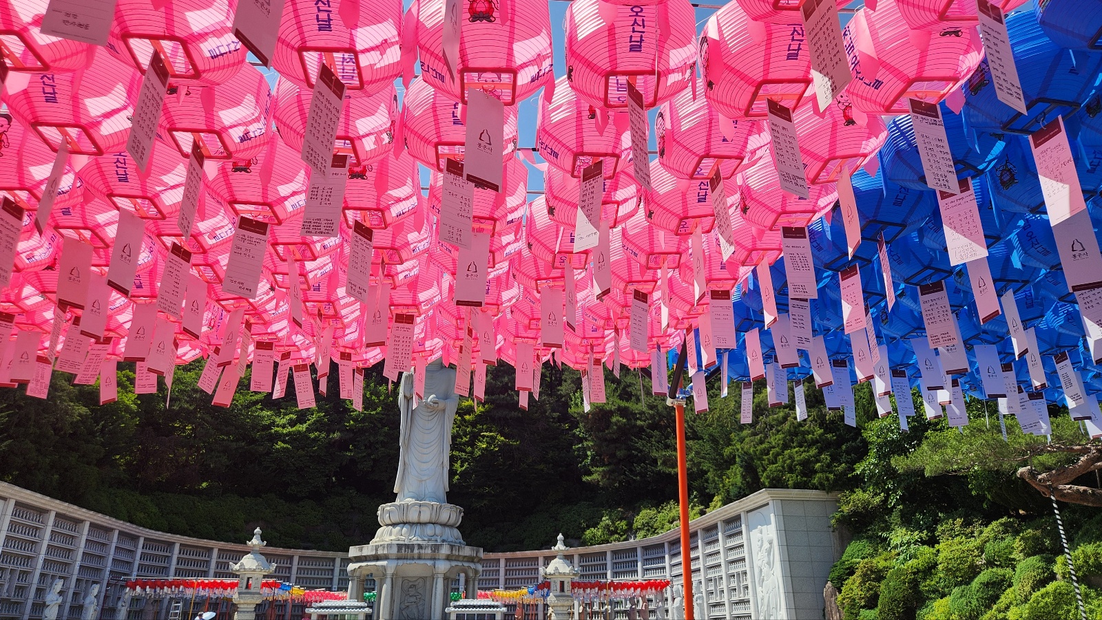 연등 밑에 달려있는 염원들을 이루어지도록