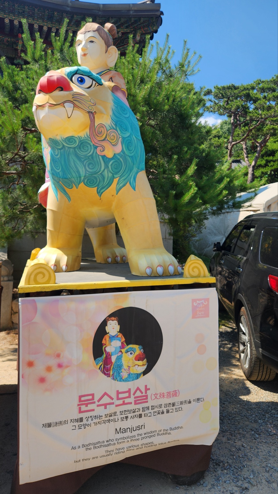 문수보살;제불의 지혜를 상징하는 보살로 보현보살과 함께 협시로 삼존불을 이룬다