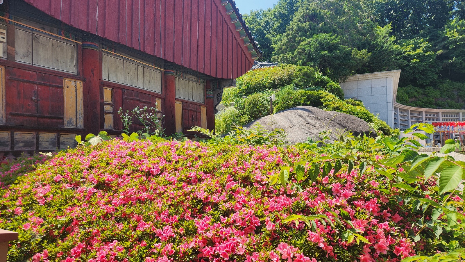 진분홍색 영산홍은 활짝 피어나