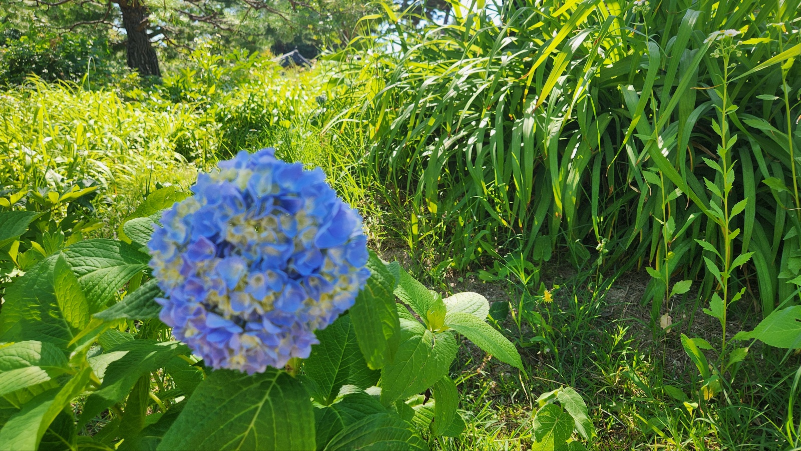 "날불곳"이라는 약수터 바로 옆 수국꽃이 피어있다